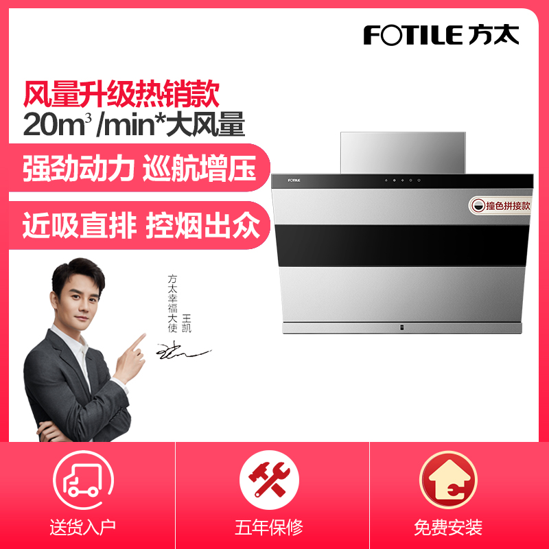 JQ26TA 自动巡航增压 20m3/min大风量 全自动隔烟屏 侧吸抽油烟机【不锈钢+钢化玻璃/黑色】 |