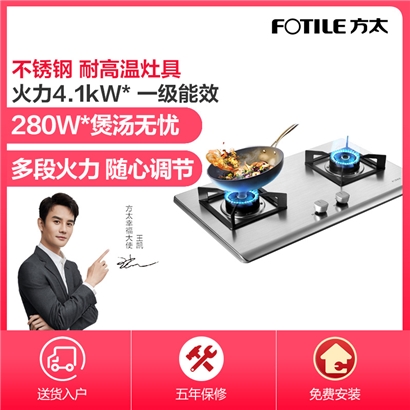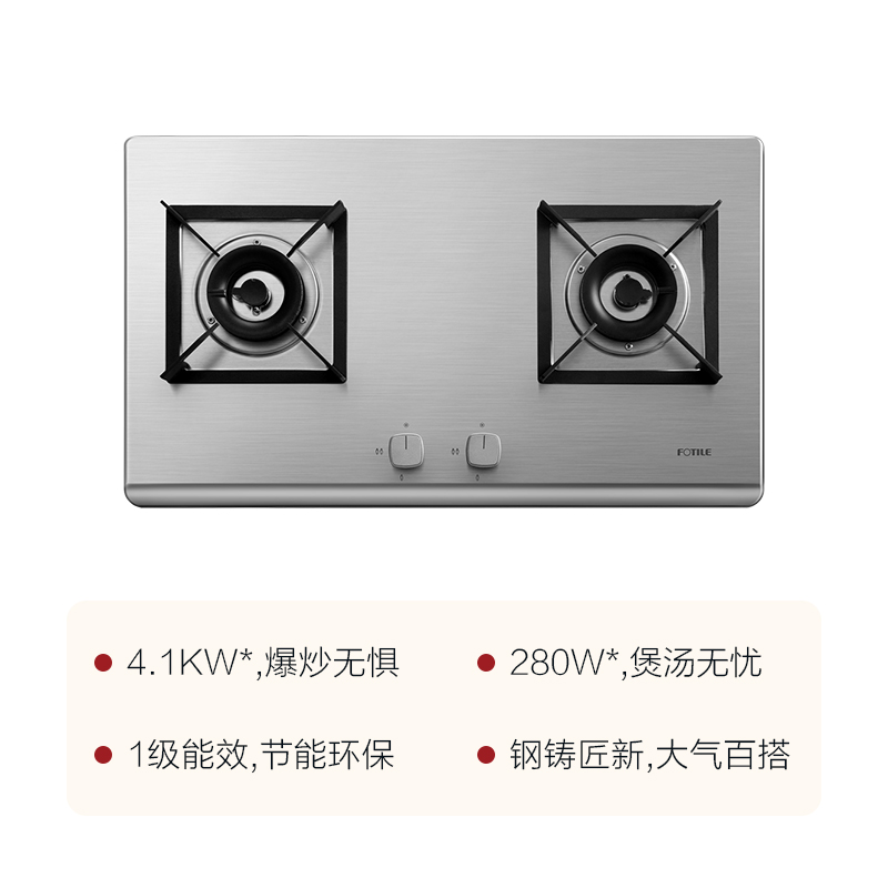 HT8GE 耐高温 4.1KW*大火力 一级能效 易清洁 不锈钢 燃气灶【不锈钢/不锈钢色】 |