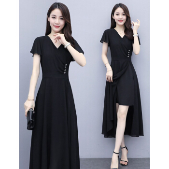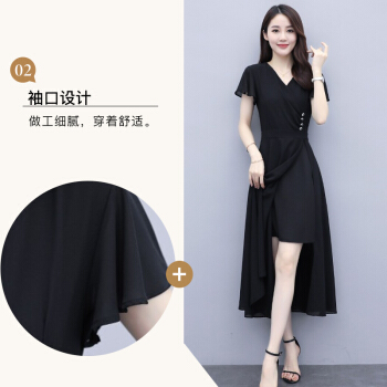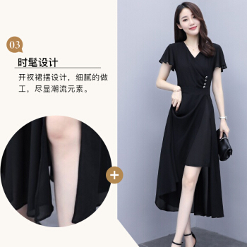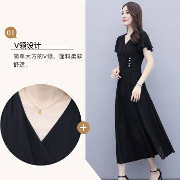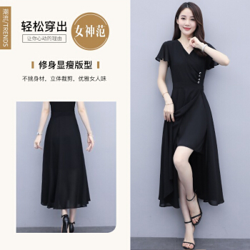 佬唐森雪纺连衣裙女夏季新款轻熟风显瘦长裙遮肚气质女神范仙女裙子 黑色 请拍正确尺码 |