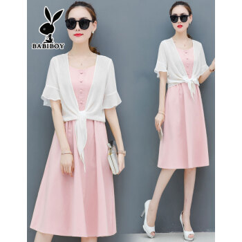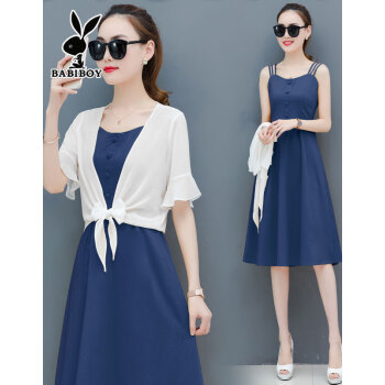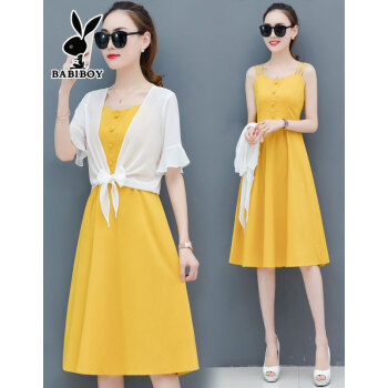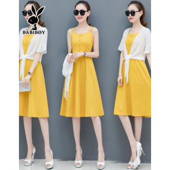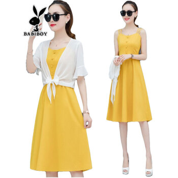 BABIBOY 雪纺连衣裙女两件套短套装裙夏季新款韩版小个子显高洋气质减龄雪纺女士吊带裙子 黄色 M |