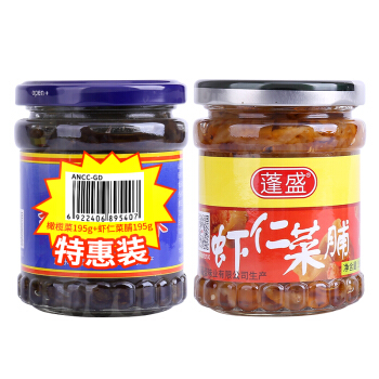 蓬盛 酱腌菜 香港橄榄菜+虾仁菜脯 开胃下饭菜组合装 195g*2 潮汕特产 |