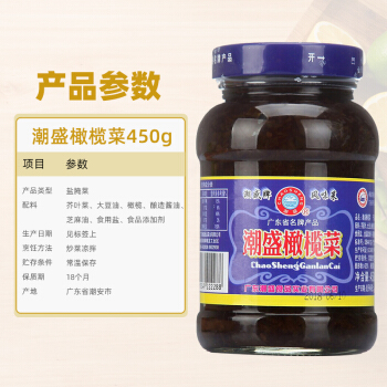 潮盛 酱腌菜 香港橄榄菜 450g 广东省名牌产品 |