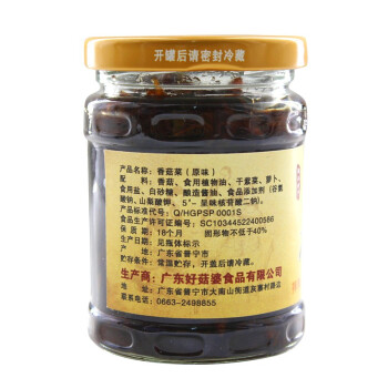好菇婆 香菇菜酱腌菜下饭菜瓶装180g 广东潮汕特产 香菇酱 小菜开胃菜 拌面拌饭酱 早餐配菜 【原味香菇菜1瓶】 180g |
