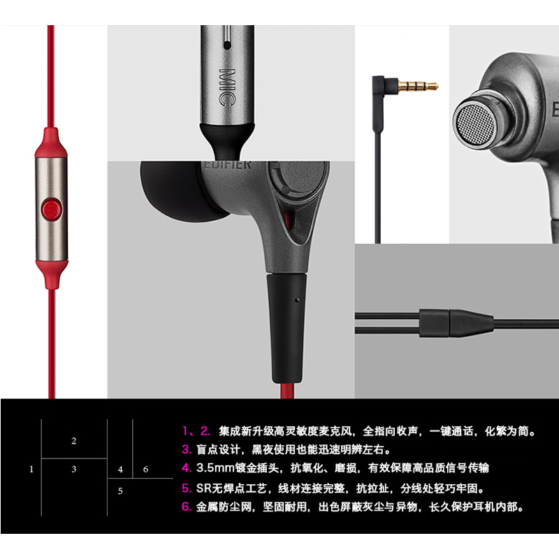 漫步者(EDIFIER)入耳式有线耳机音乐耳机【塑胶/酷雅黑】 |