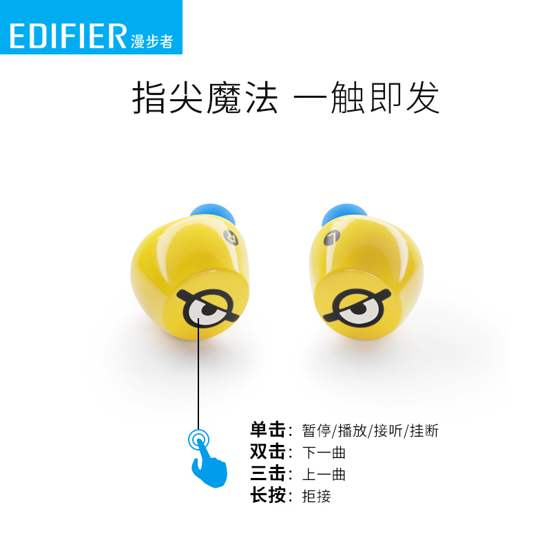 漫步者(EDIFIER)W3“小黄人”定制版 真无线蓝牙耳机【塑料/黄色】 |