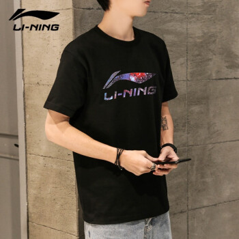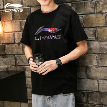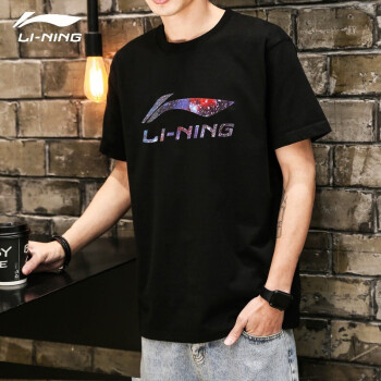 李宁(LI-NING)短袖t恤男夏季速干圆领T恤舒适透气半袖棉打底衫运动服 基础黑-纯棉(星空) L(175) |