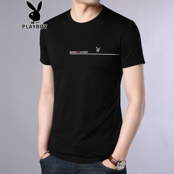 短袖T恤男夏季男装男士半短袖韩版时尚潮流修身休闲上衣夏天青年圆领体恤运动打底衫半截袖T桖衣服 黑色 XL |