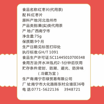 恋绿【3罐装】红枣片 无核红枣干片脆切片红枣片泡水配枸杞泡茶零食红枣茶225g |