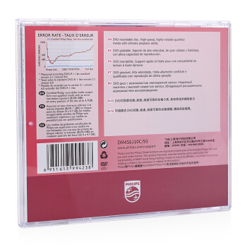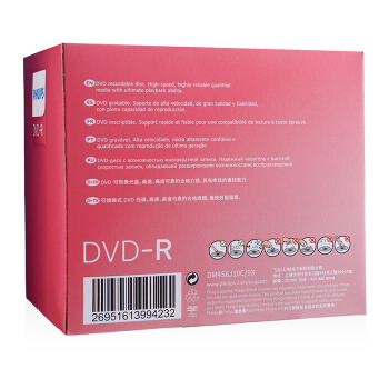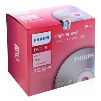 飞利浦(PHILIPS)DVD-R 光盘/刻录盘 单片盒装10片/包 16速4.7G 空白光碟 |