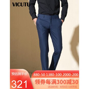 威可多VICUTU男士套西裤羊毛蓝色时尚修身商务西服裤VRS18121936惠 蓝色 180/90A |