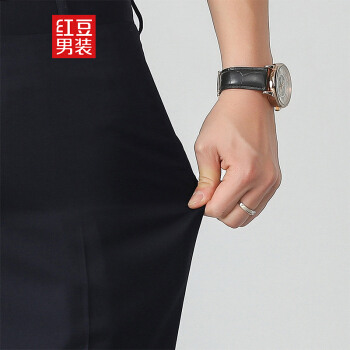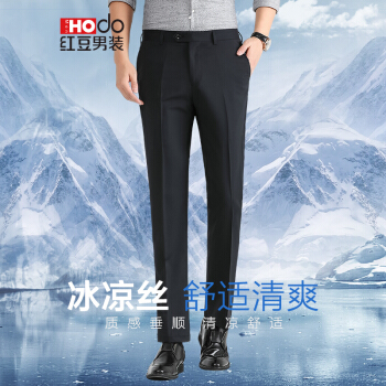 红豆(Hodo)男装 西裤男 商务休闲男士冰凉丝透气修身中腰西裤 B5藏青色 165/78A(31) |
