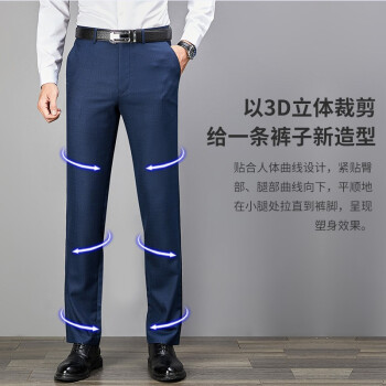 默守轻奢品牌男装西裤男商务正装宽松夏季中年免烫大码经典裤子男新款男装西裤礼物送老公 灰蓝 84S |
