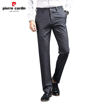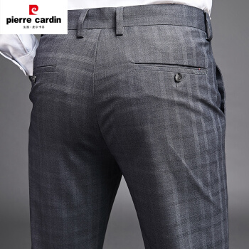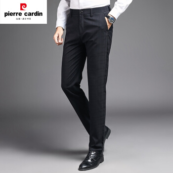皮尔卡丹(pierrecardin)春夏新款中青年男式休闲裤薄款直筒格子百搭西裤爸爸装男士长裤潮针织 黑色 33 |