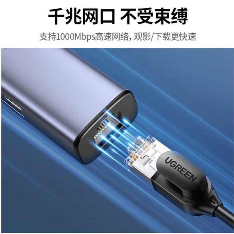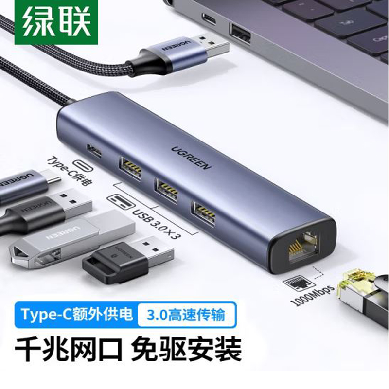 绿联(UGREEN) 20915 USB3.0千兆有线网卡转RJ45网线接口适用笔记本Switch外置网口转接器 USB千兆网卡+3.0分线器+供电 |