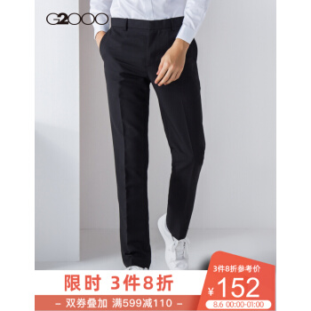 G2000男装垂商务西裤四季款宽松标准版上班直筒简约西服裤子00051020 黑色/99 36/180 |