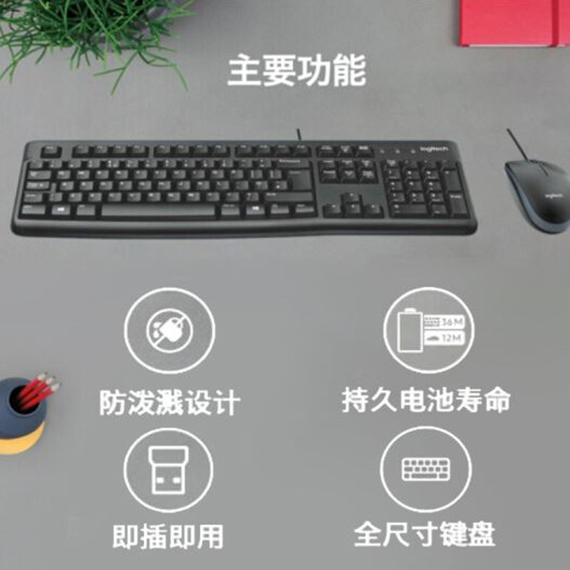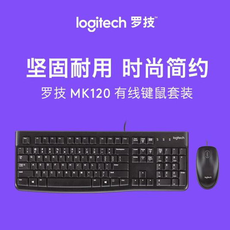 罗技MK120有线键鼠套装舒适手感防泼溅家用电竞游戏和商务办公有线键盘鼠标套件台式外接笔记本电脑专用 【MK120】黑色 |