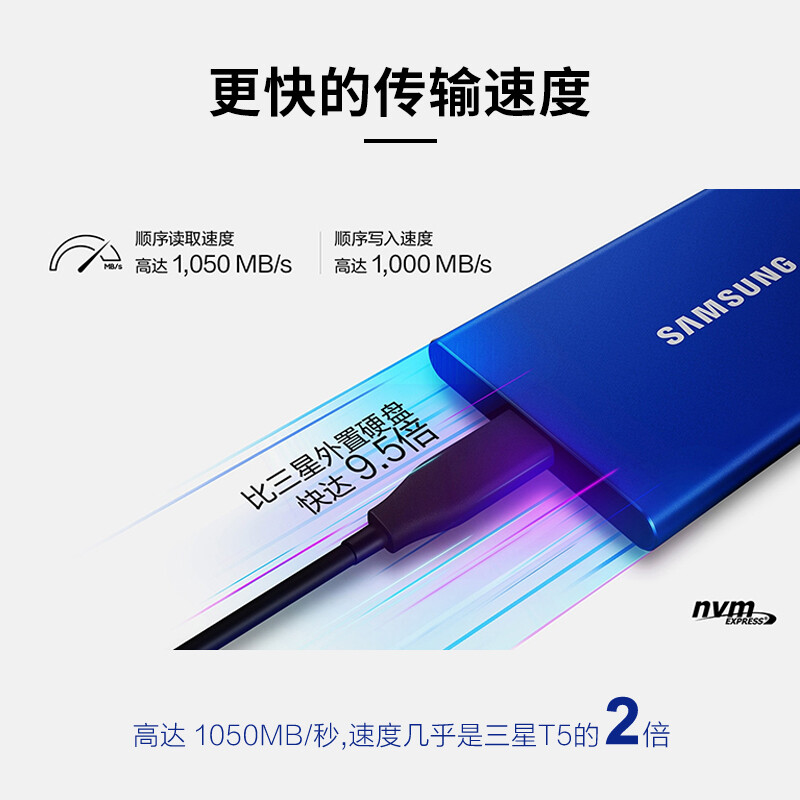 三星(SAMSUNG) 2TB Type-c USB 3.2 移动固态硬盘(PSSD) T7 灰色 NVMe传输速度1050MB/s |