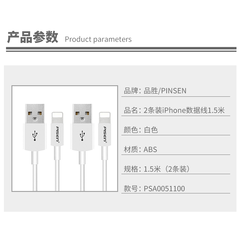 2条装iPhone数据线1.5米【ABS/白色】 |