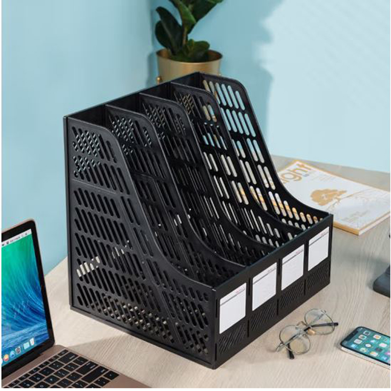 得力(deli) 9848 四联镂空桌面文件框 办公室桌面多层资料架子四栏带标签稳固文件栏 黑色 |