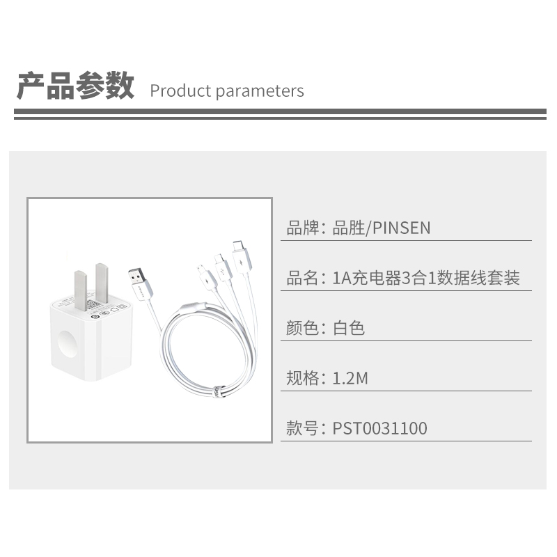 手机充电器3合1数据线套装【ABS/白色】 |