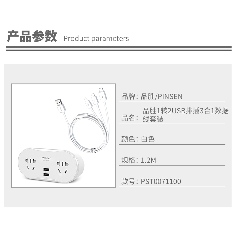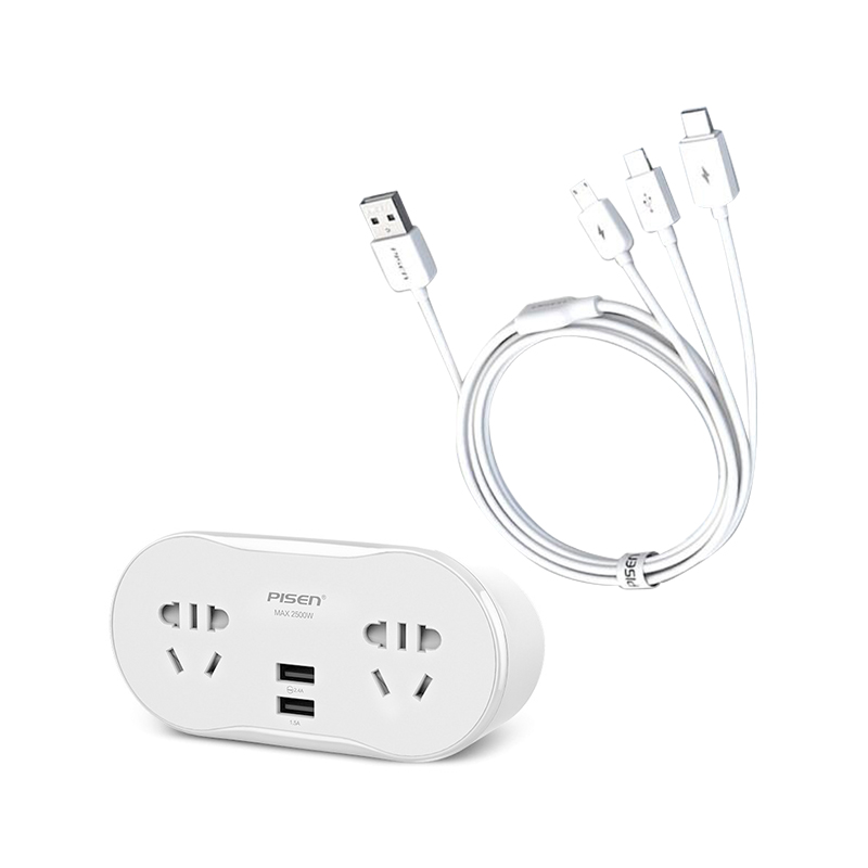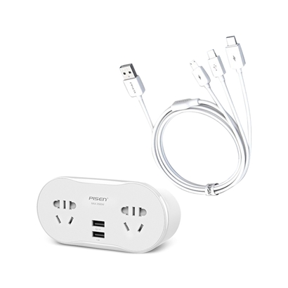 1转2USB排插3合1数据线套装【ABS/白色】 |