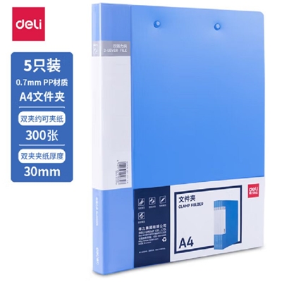 得力(deli)5只A4金属双强力文件夹 33296蓝色 |