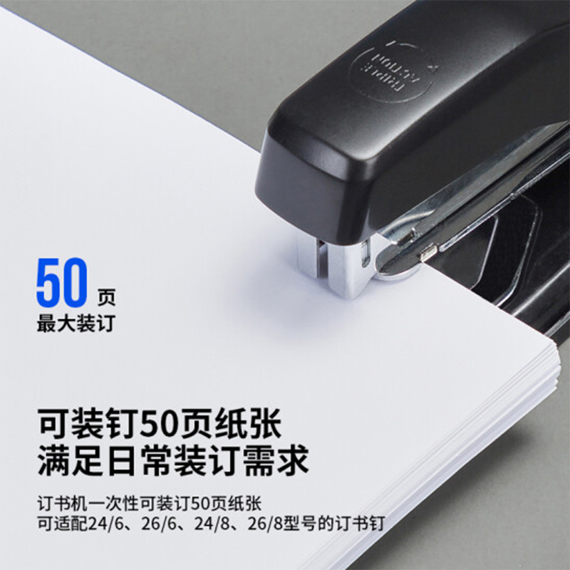 得力(deli)12#50页旋转式订书机 厚层订书器 中缝装订 临时装订可拆 办公用品 黑色0414 |
