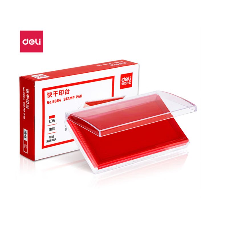 得力(deli)9864 红色137*88mm透明外壳方形快干印台印泥 |