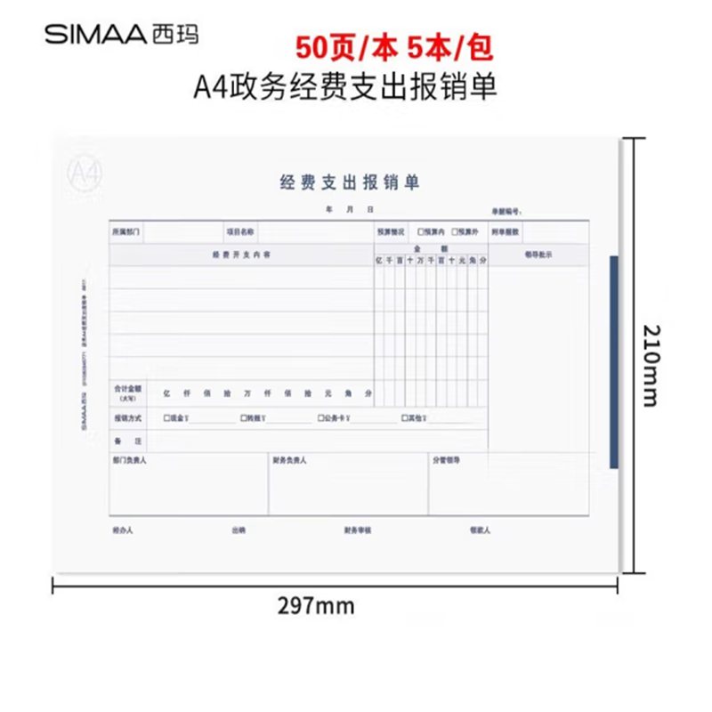 西玛(SIMAA)政务经费支出报销单A4纸大小297*210mm 50页/本 5本/包8811 |