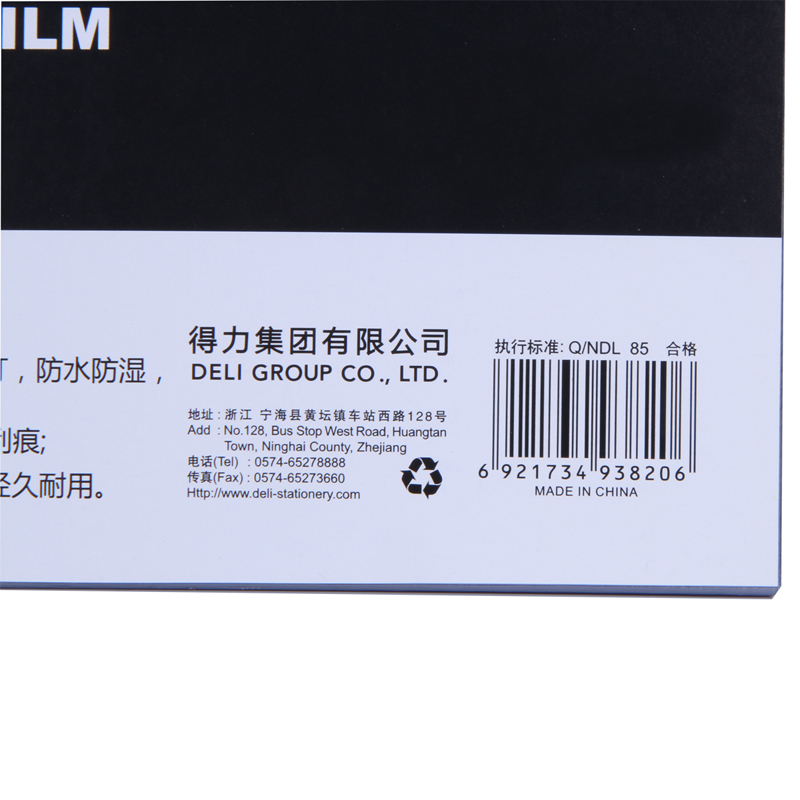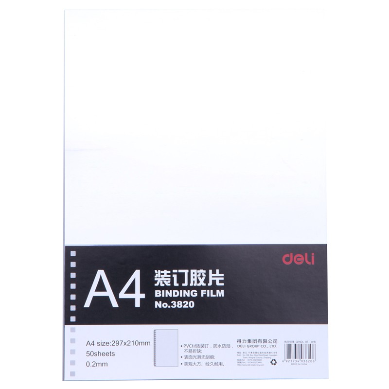 得力3820装订胶片(50张/包) |
