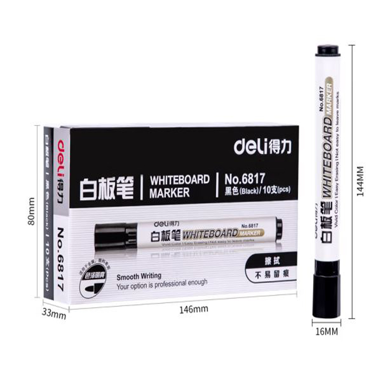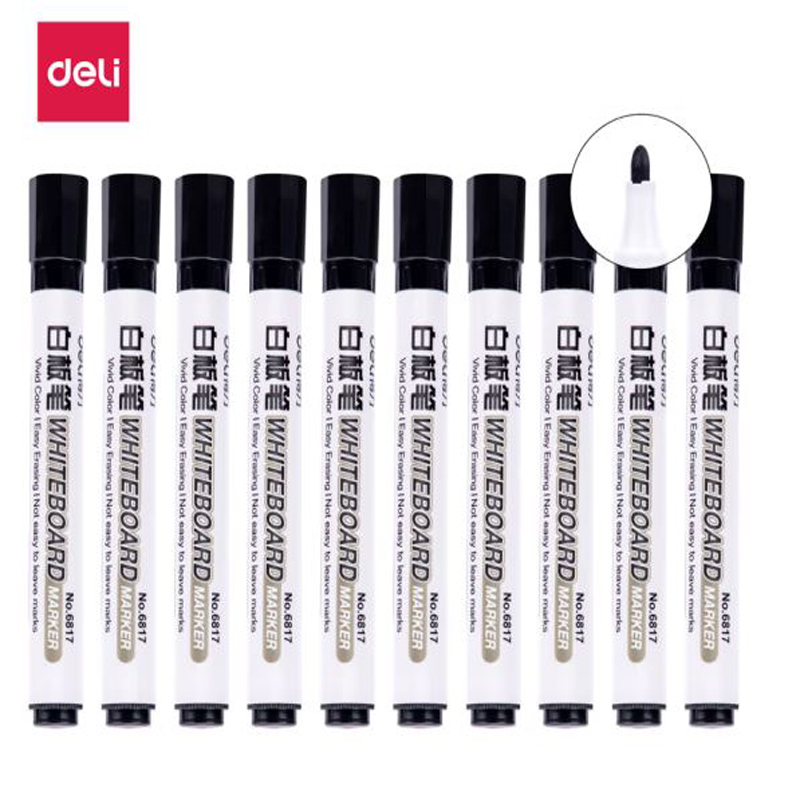 得力(deli)白板笔 色泽明亮可擦易擦 黑色10支/盒 6817 办公用品 |