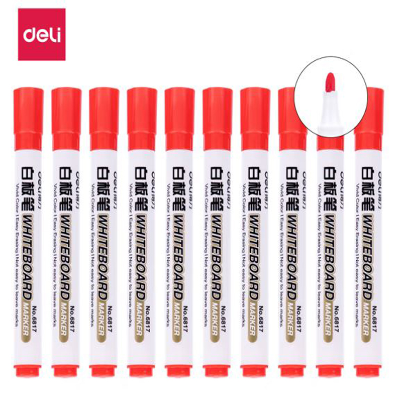 得力(deli)白板笔 色泽明亮可擦易擦红色10支/盒 6817 办公用品 |