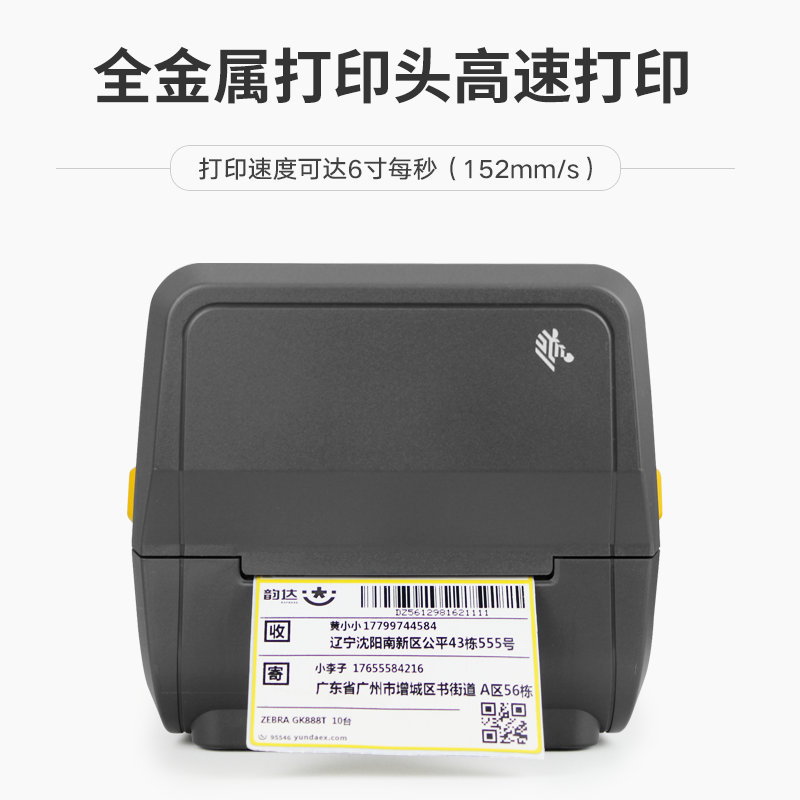 ZEBRA 斑马ZD888T 标签打印机 热转印条码打印机不干胶吊牌快递电子面单GK888T升级版 ZD888T 黑色(赠送得力扫码枪) |