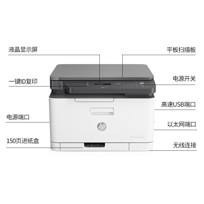 惠普(HP) 彩色激光A4打印复印扫描一体机 178nw标配 |