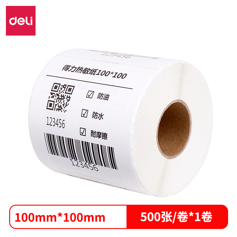 得力12001三防热敏标签纸(100*100mm-500张)(白)(1卷/筒) |