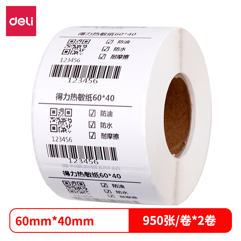 得力12002三防热敏标签纸(60*40mm-950张)(白)(2卷/筒) |