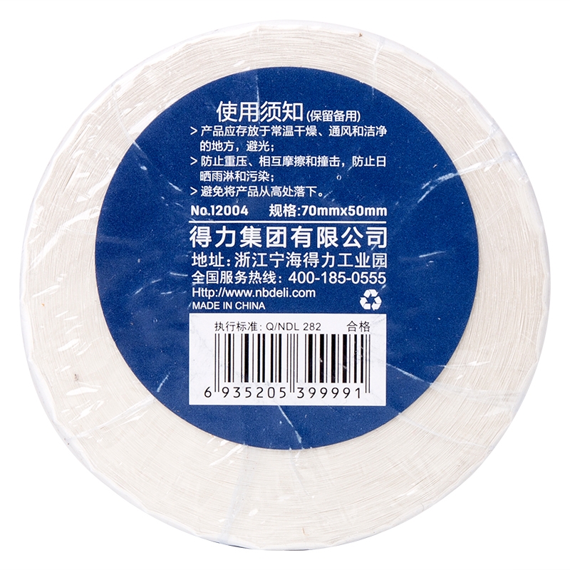 得力12004三防热敏标签纸(70*50mm-750张)(白)(1卷/筒) |