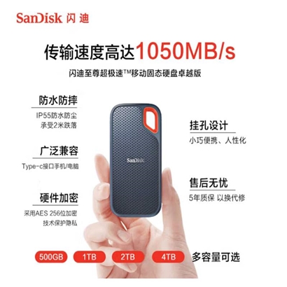 闪迪 4TB Type-c 移动固态硬盘(PSSD)E61极速移动版 |