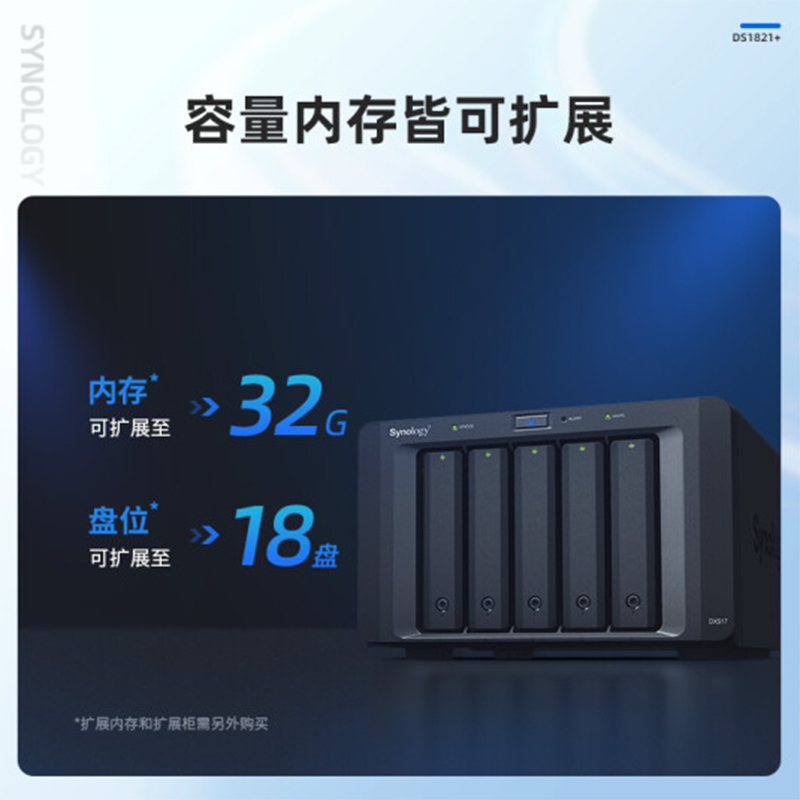 群晖(Synology)DS1821+ 四核心8盘位 NAS 网络存储服务器 |