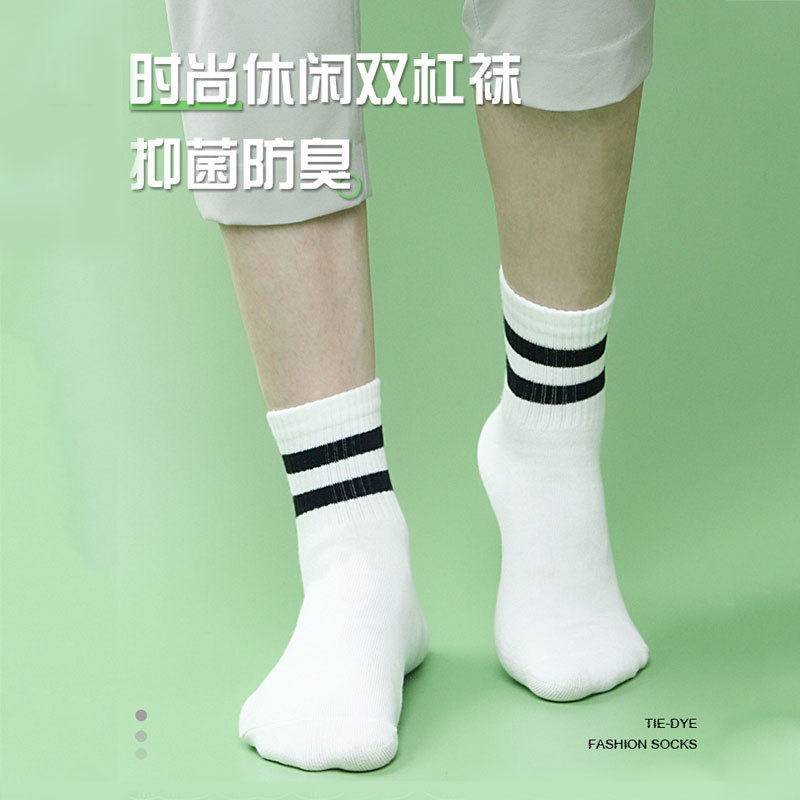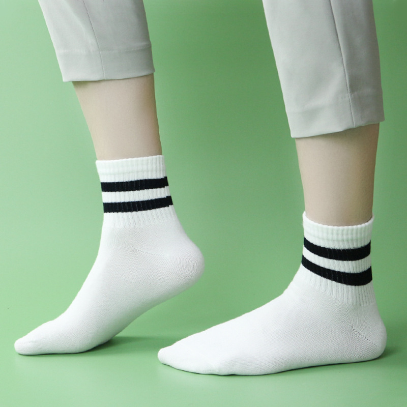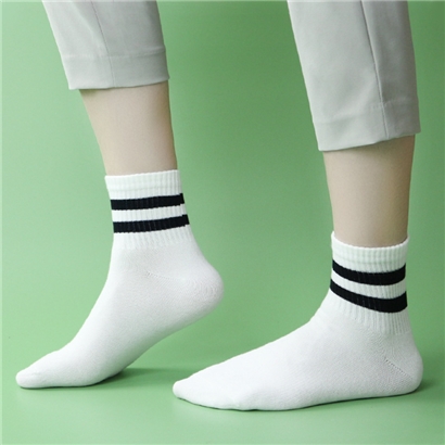 秋冬透气条纹中筒袜 均码 白黑色 袜子 |