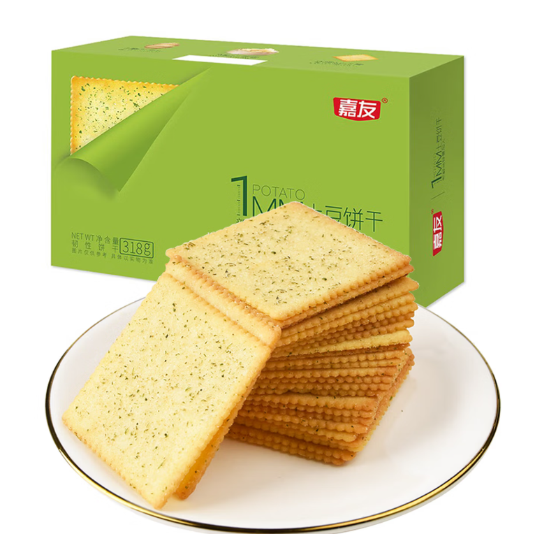 嘉友土豆薄饼薄脆饼干芥末海苔味318g(约32小包) |