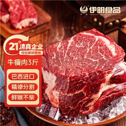 伊明食品进口原切牛瘦肉3斤 清真生鲜牛肉精选大块牛瘦肉部位炖煮 |