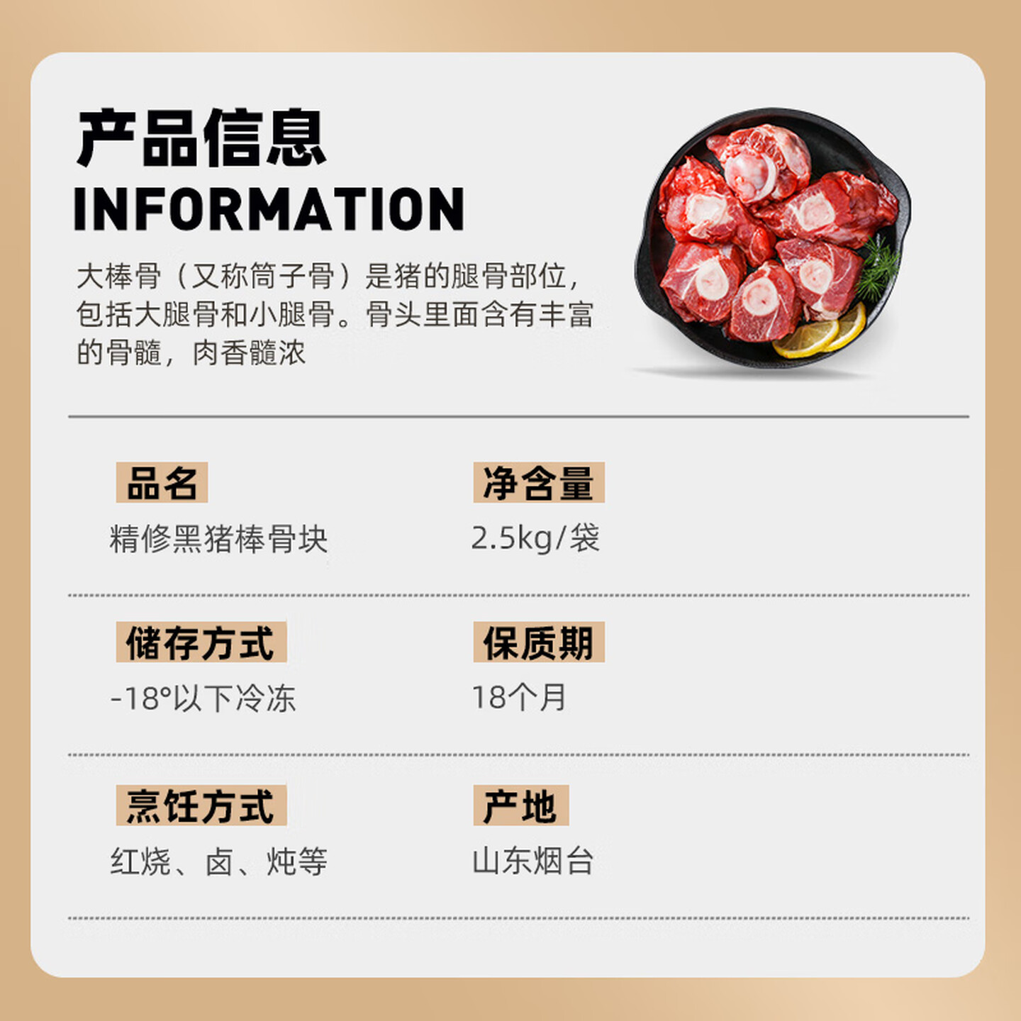 龙大肉食 黑猪棒骨块净重5斤 猪筒骨 免切猪大骨头棒骨带骨髓 |