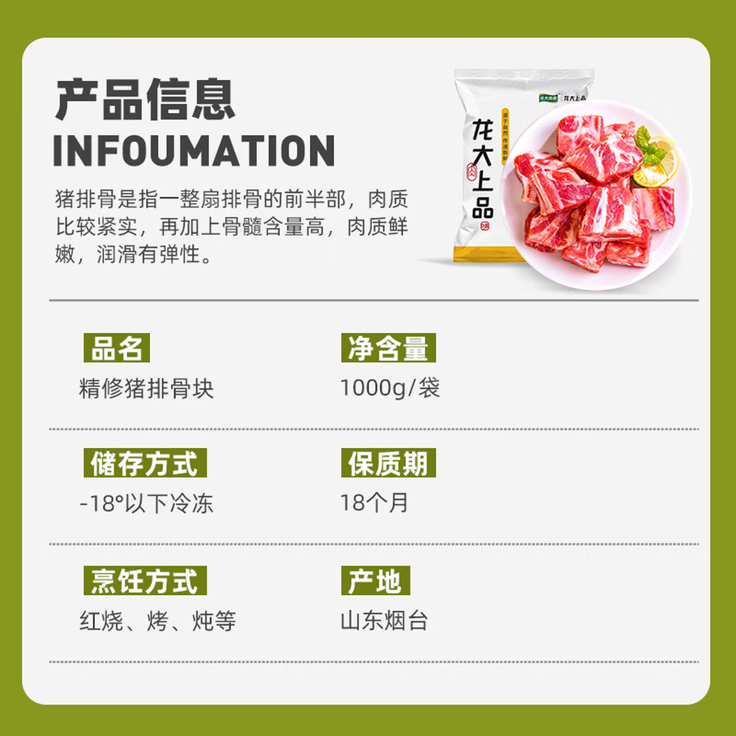 龙大肉食 国产猪排骨块2斤 猪排骨 |