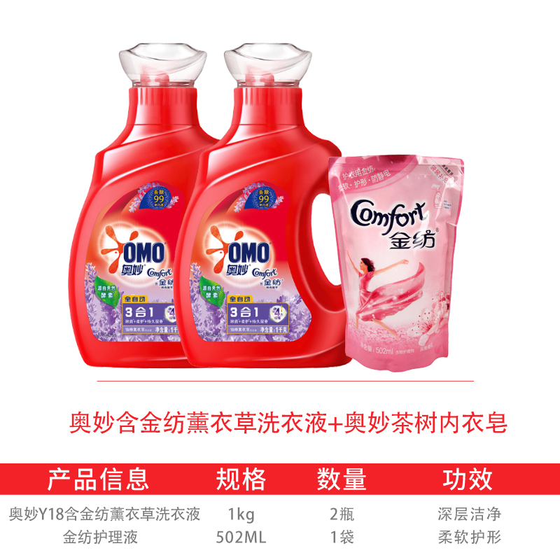 奥妙Y18含金纺薰衣草洗衣液4斤+金纺502ml组合 |