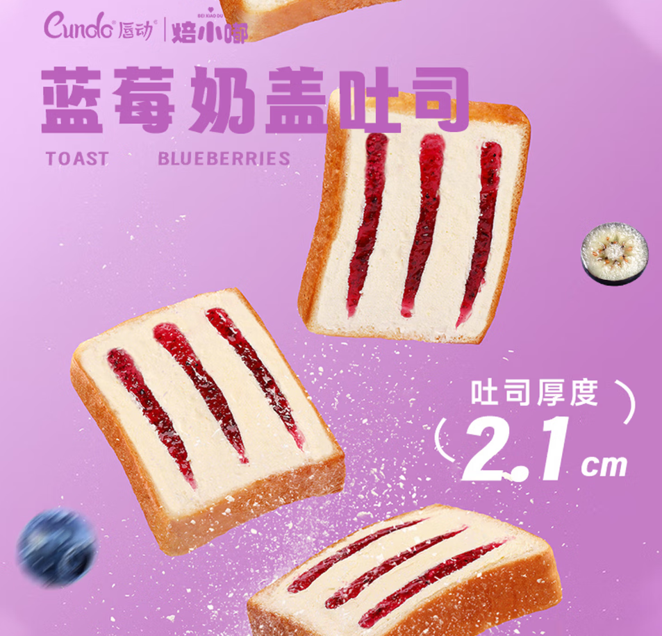 唇动奶盖厚切吐司面包蓝莓味470g |
