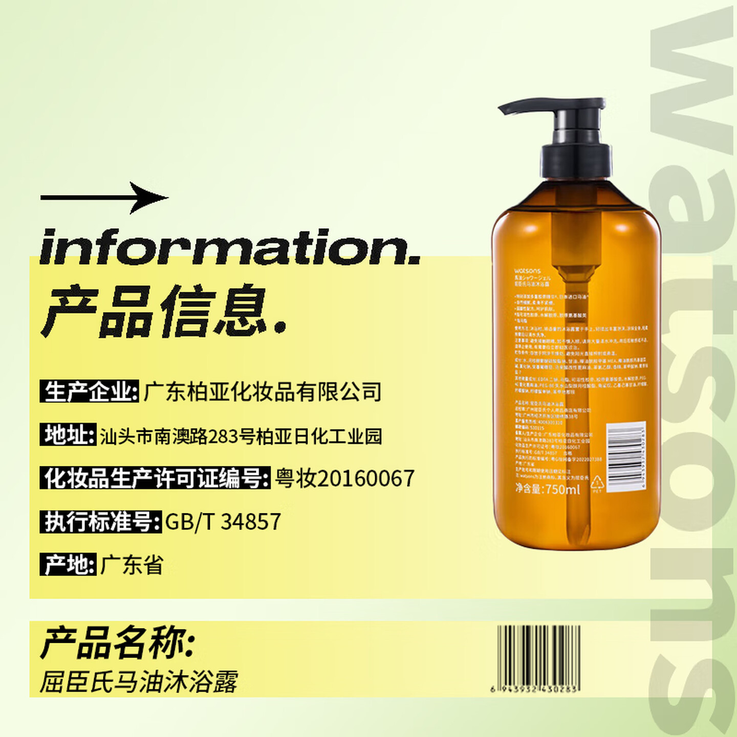 屈臣氏马油沐浴露750ML |