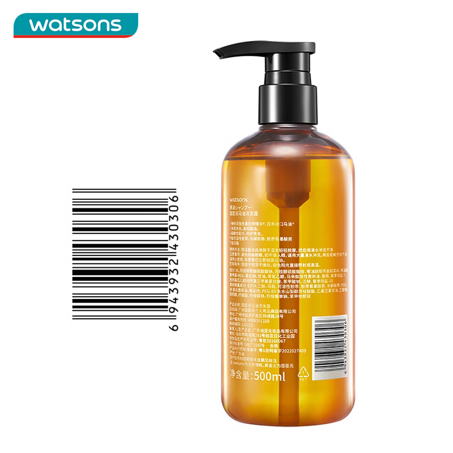 屈臣氏马油洗发露500ml |