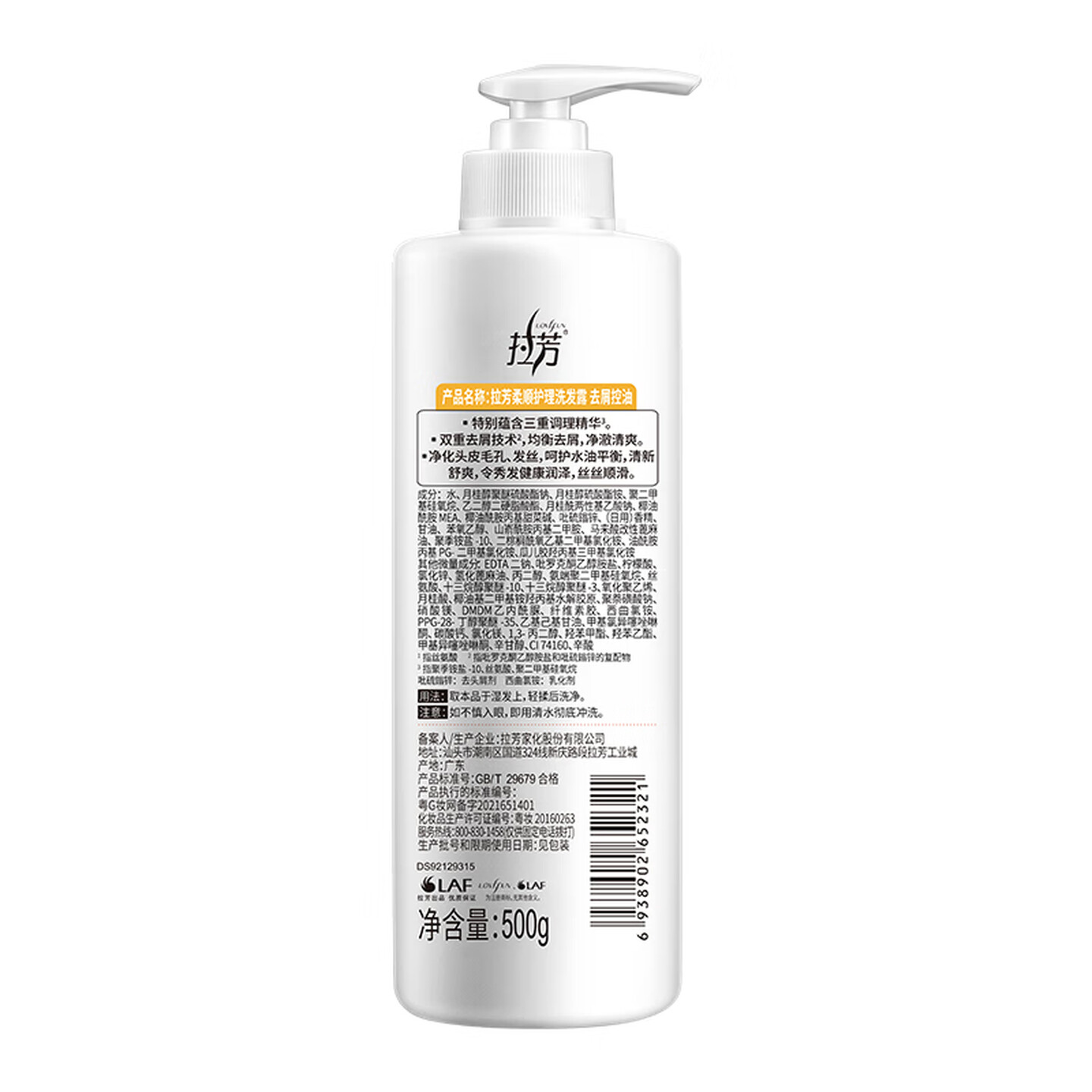 拉芳柔顺护理洗发露去屑控油洗发水500g |