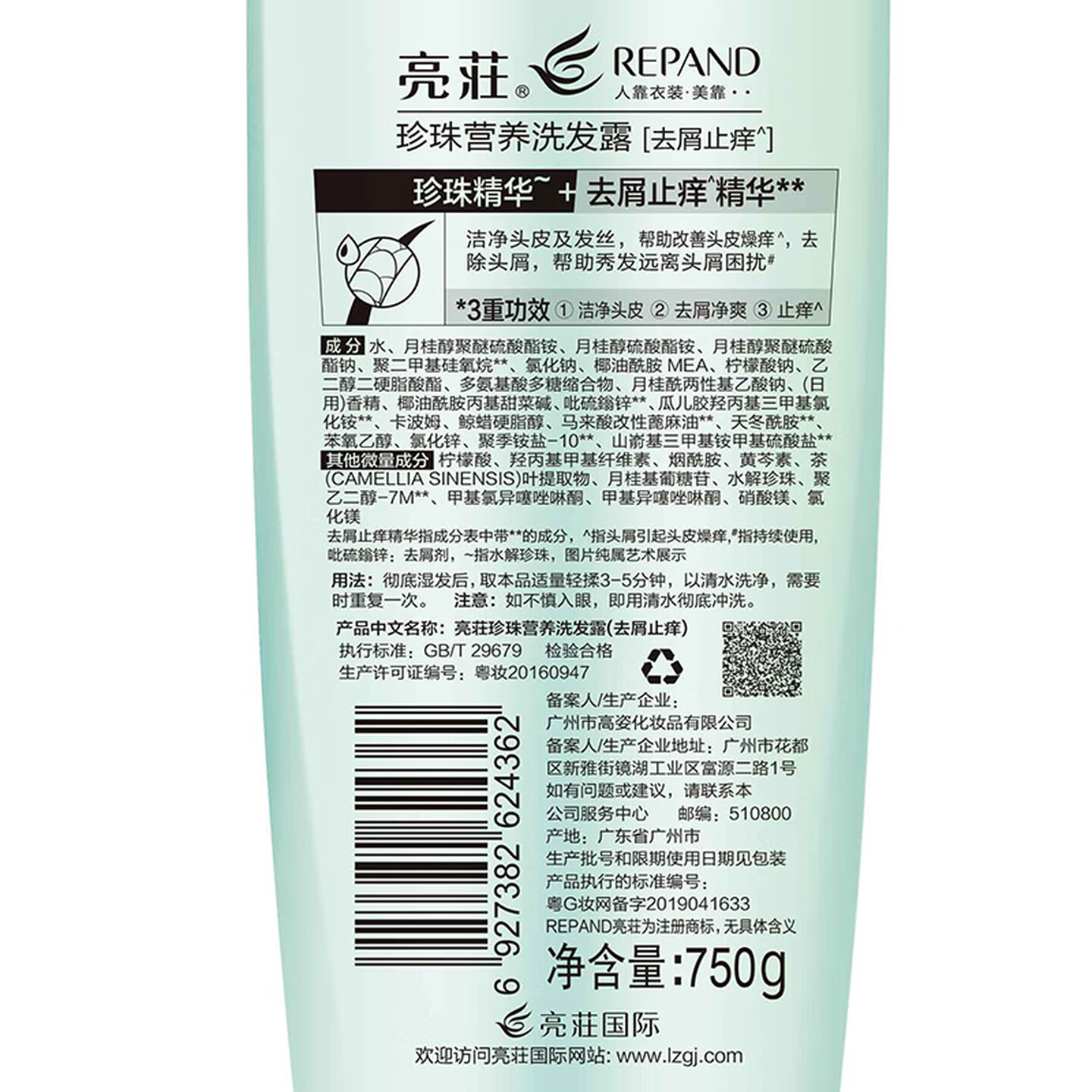 亮莊珍珠营养洗发露750g去屑止痒洗发水 |